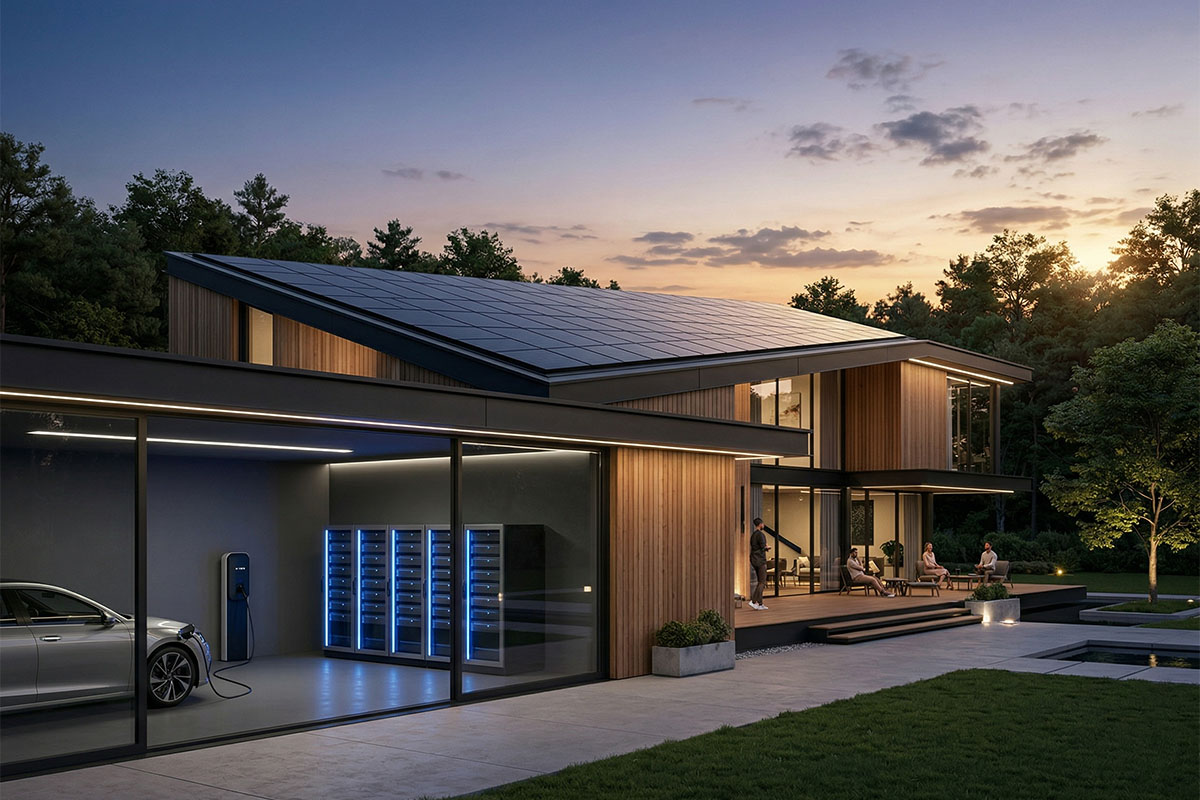 Accumulo di Nuova Generazione: Nel 2026, le batterie al litio-ferro-fosfato (LiFePO4) o allo stato solido integrate nel locale tecnico permettono di stoccare l’energia prodotta dal fotovoltaico diurno per coprire l’intero fabbisogno notturno, inclusa la ricarica dei veicoli elettrici.