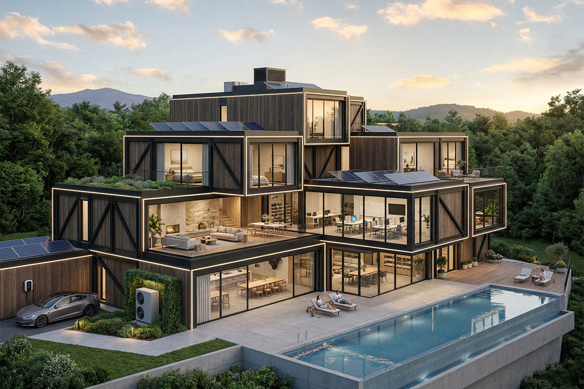 Il vero segreto di un edificio ibrido performante risiede nell’integrazione con gli impianti e le finiture. L’integrazione di impianti di riscaldamento e raffrescamento all’avanguardia, come le pompe di calore ad aria o acqua e i sistemi radianti a pavimento o soffitto (magari realizzati con sistemi per pavimenti a secco), garantisce il massimo comfort abitativo con un consumo energetico minimo. Anche i serramenti minimali ad alte prestazioni svolgono un ruolo cruciale, assicurando la continuità dell’isolamento e massimizzando l’apporto di luce naturale.